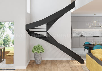 Уникальность, свойственная каждому человеку, послужила отправной точкой в создании лестницы. Плавные линии, плывущие в пространстве, хорошо сочетаются с вертикальными стойками.