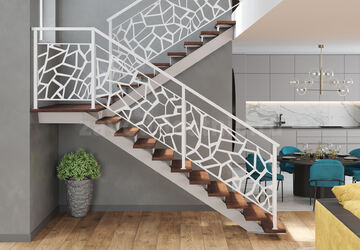 Ажурное ограждение лестницы сочетает в себе плавность линий и строгий математический расчет.